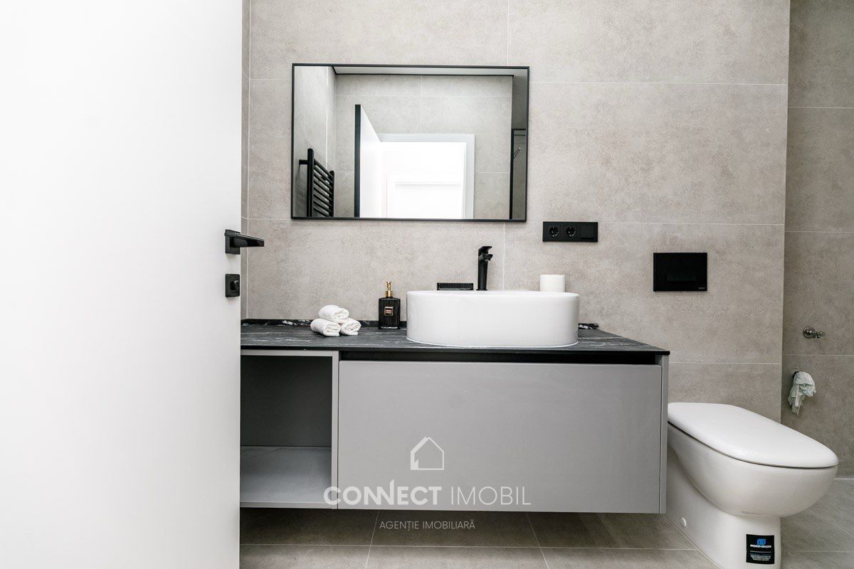 - Geamuri panoramice spre parc/apus;