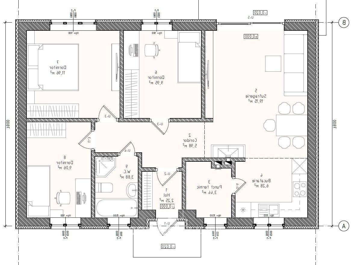 - Pereții exteriori din Brikston cu coloane din beton armat, geamuri termopane din profil german WHS by Veka cu 3 sticle, fațada se termoizolează cu polistiren grosime de 5 cm densitate 25 IPS 80 (certificat de conformitate);