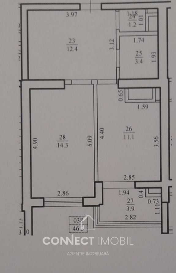 Imobilul este situat la etajul 7 din 12, cu o suprafața de 46 m2.