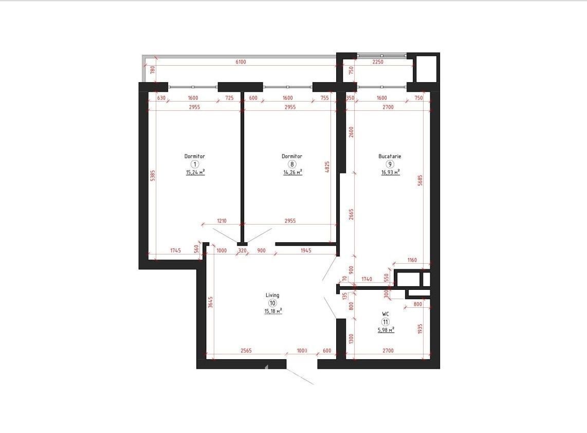 Общая площадь квартиры составляет 64 м2 и разделена на: 2 спальни, ливинга , кухню, санузел и балкон.