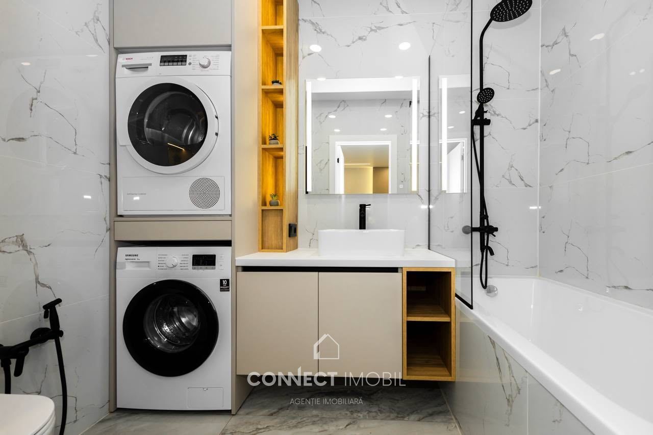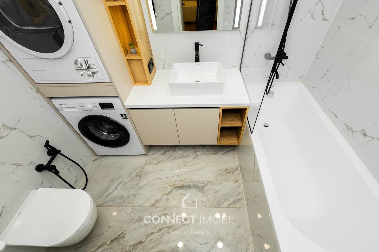 - Dotat cu tehnica (Samsung/Bosh, Conditioner iarna/vara, Tv, cuptor, microunda, masina de spalat vase, frigider, masina de spalat si de uscat) ;