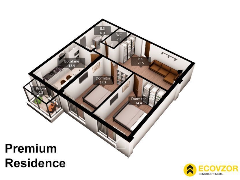Spre vânzare apartament cu două odăi și living , bloc Premiun situat in sectorul Poșta Veche, strada Iazului.