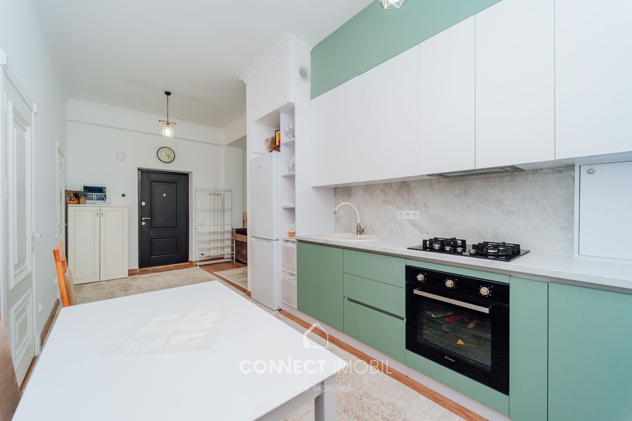 - квартира расположена в центре Кишинева, в престижном и тихом районе с высокоразвитой инфраструктурой;