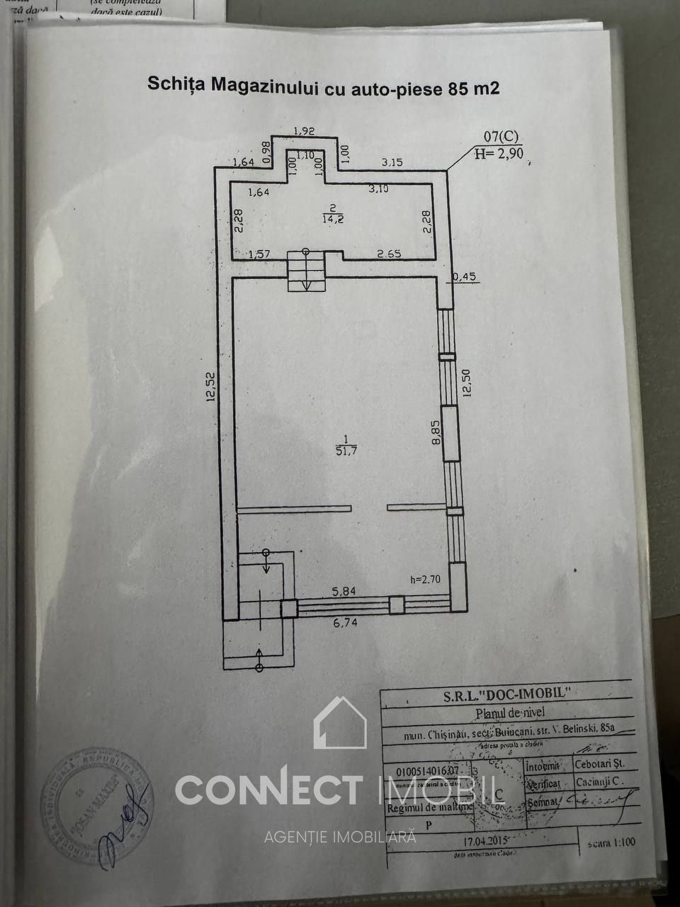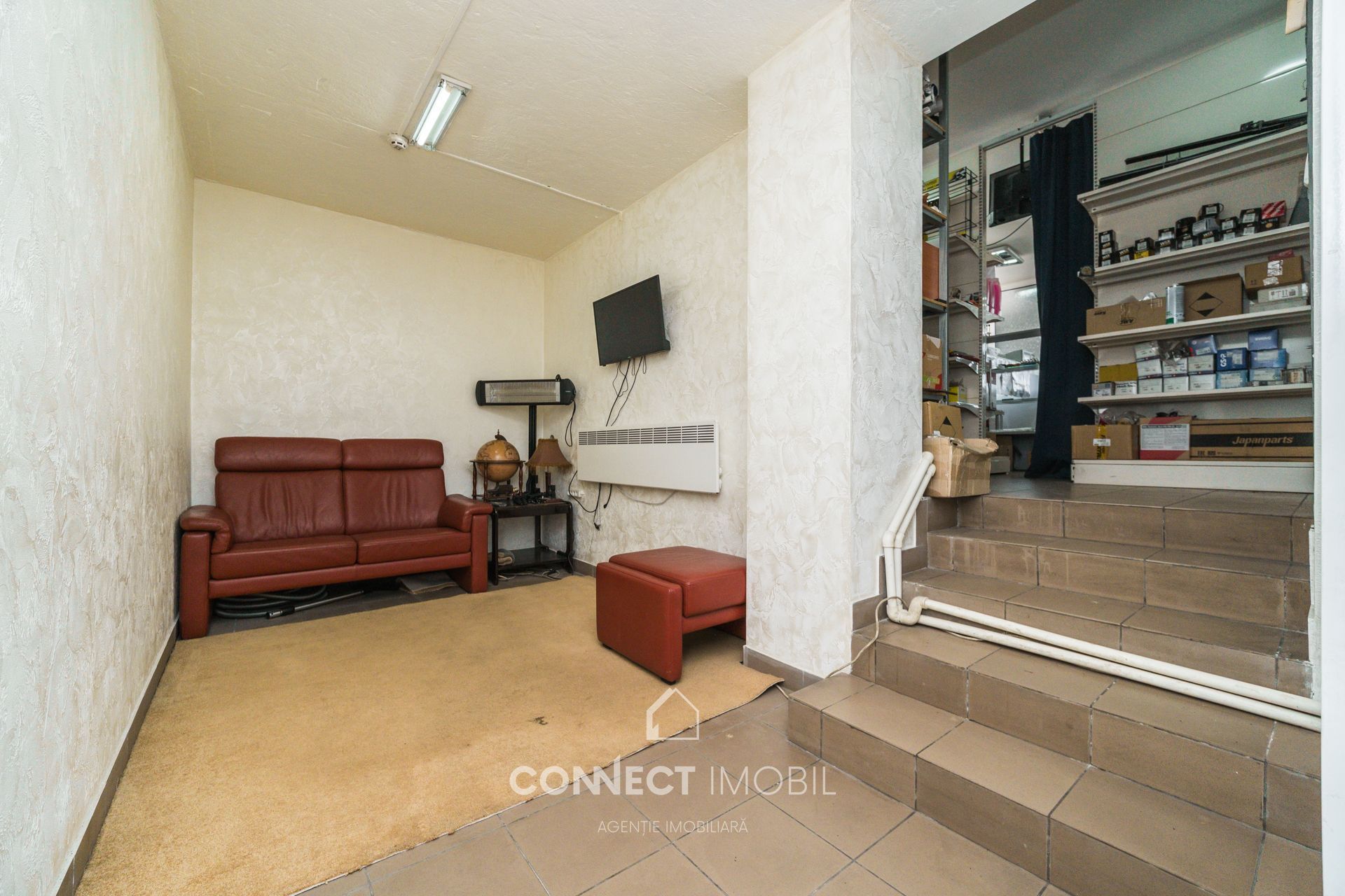 Amenajare: Zonare bine gândită — sală de vânzare spațioasă, zonă de recepție, spații de depozitare pentru marfă și cameră de odihnă.