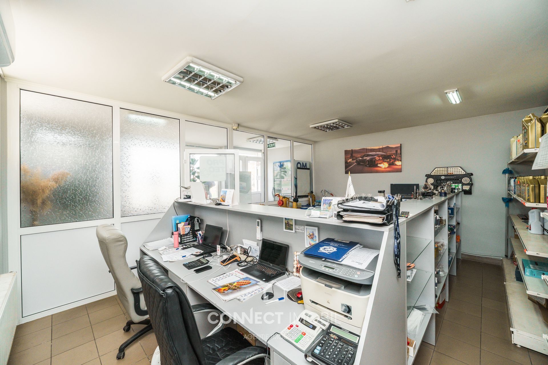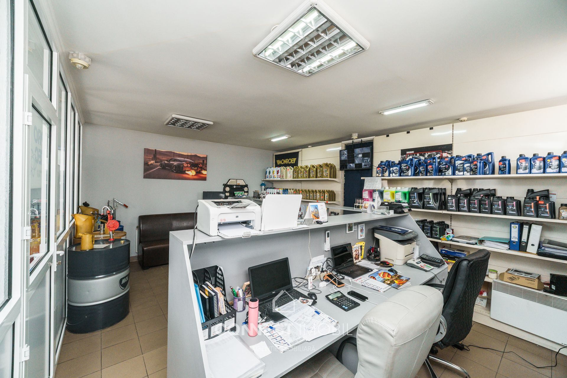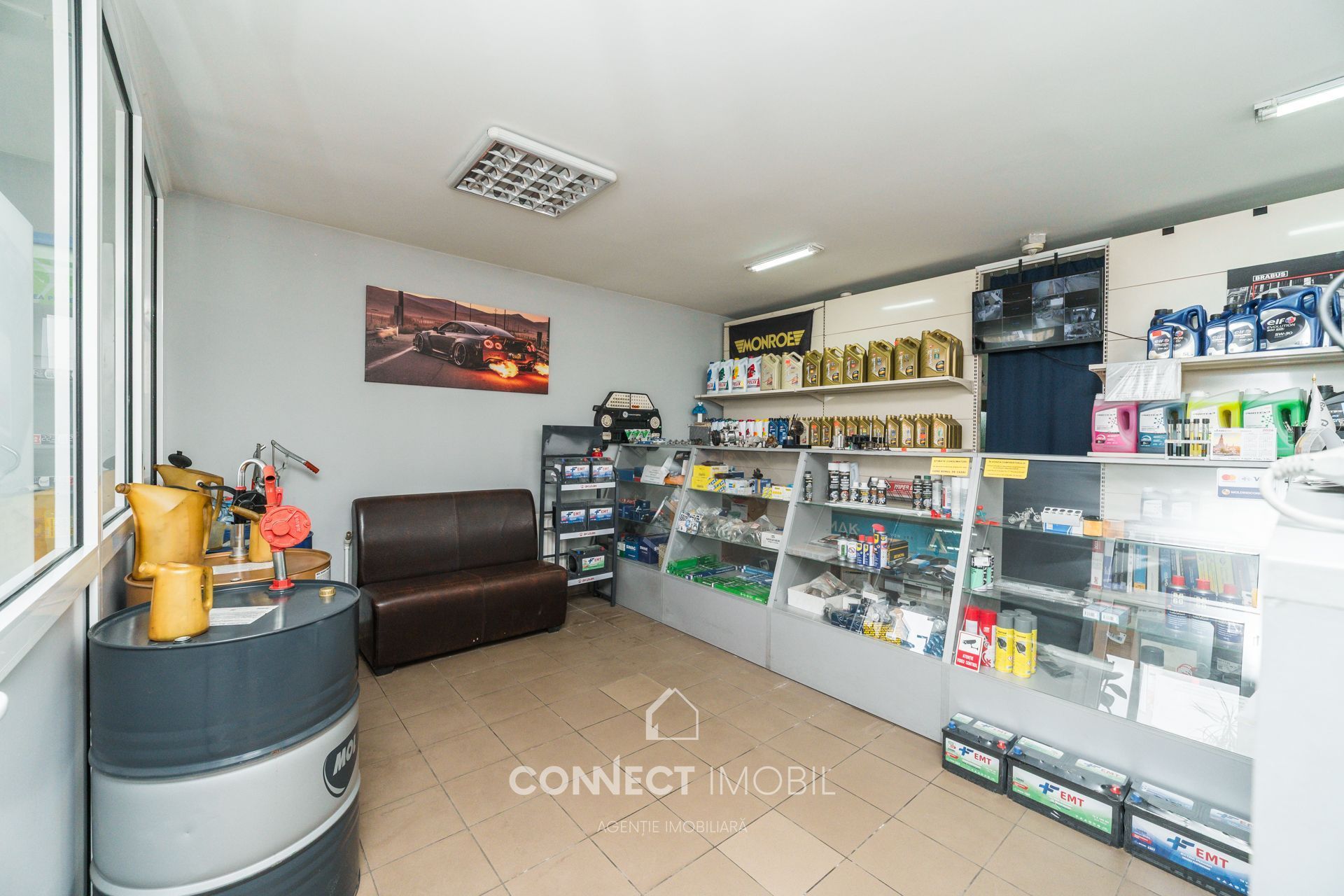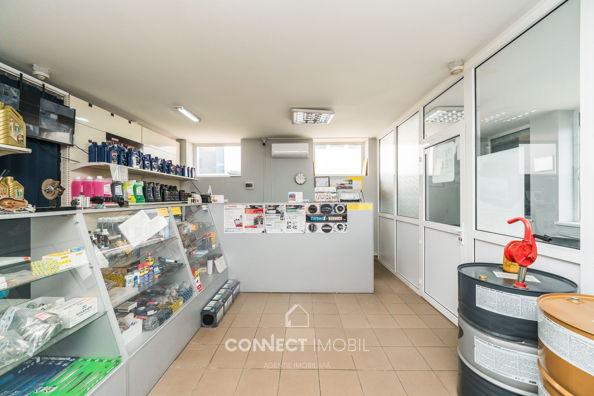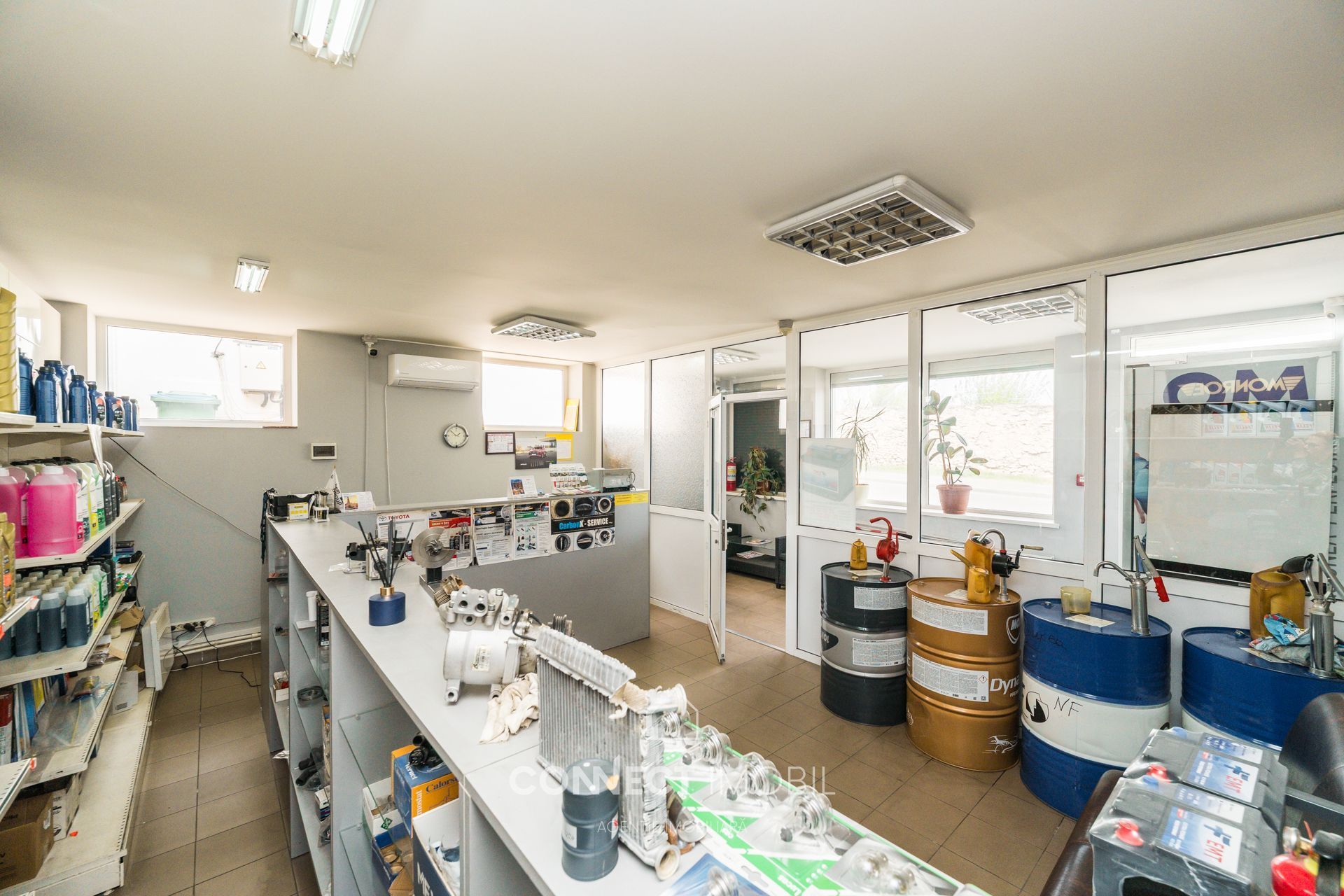 Magazinul este complet echipat cu echipamente comerciale și rafturi (mărci Mann Filter, Wix, Monroe etc.).