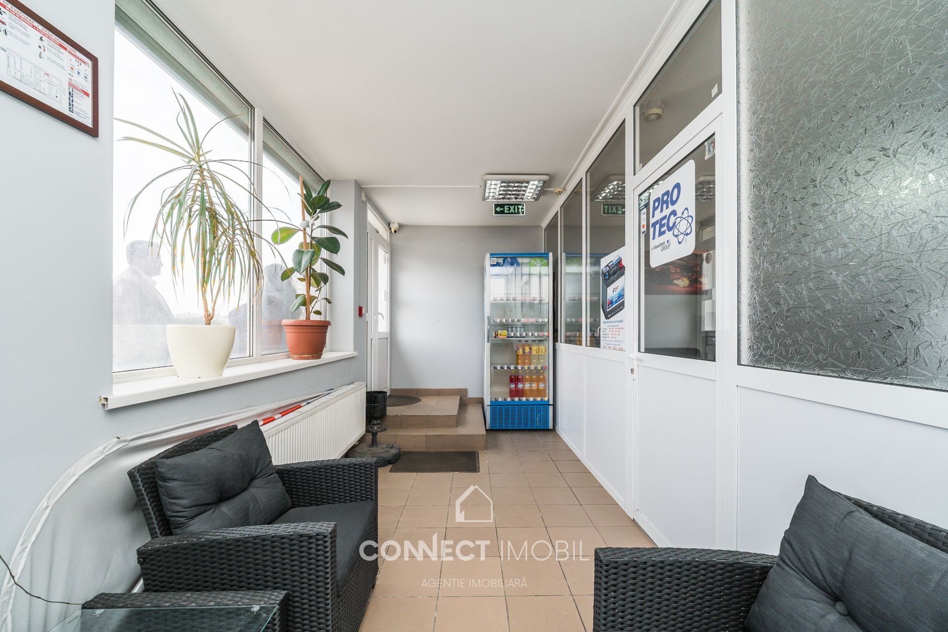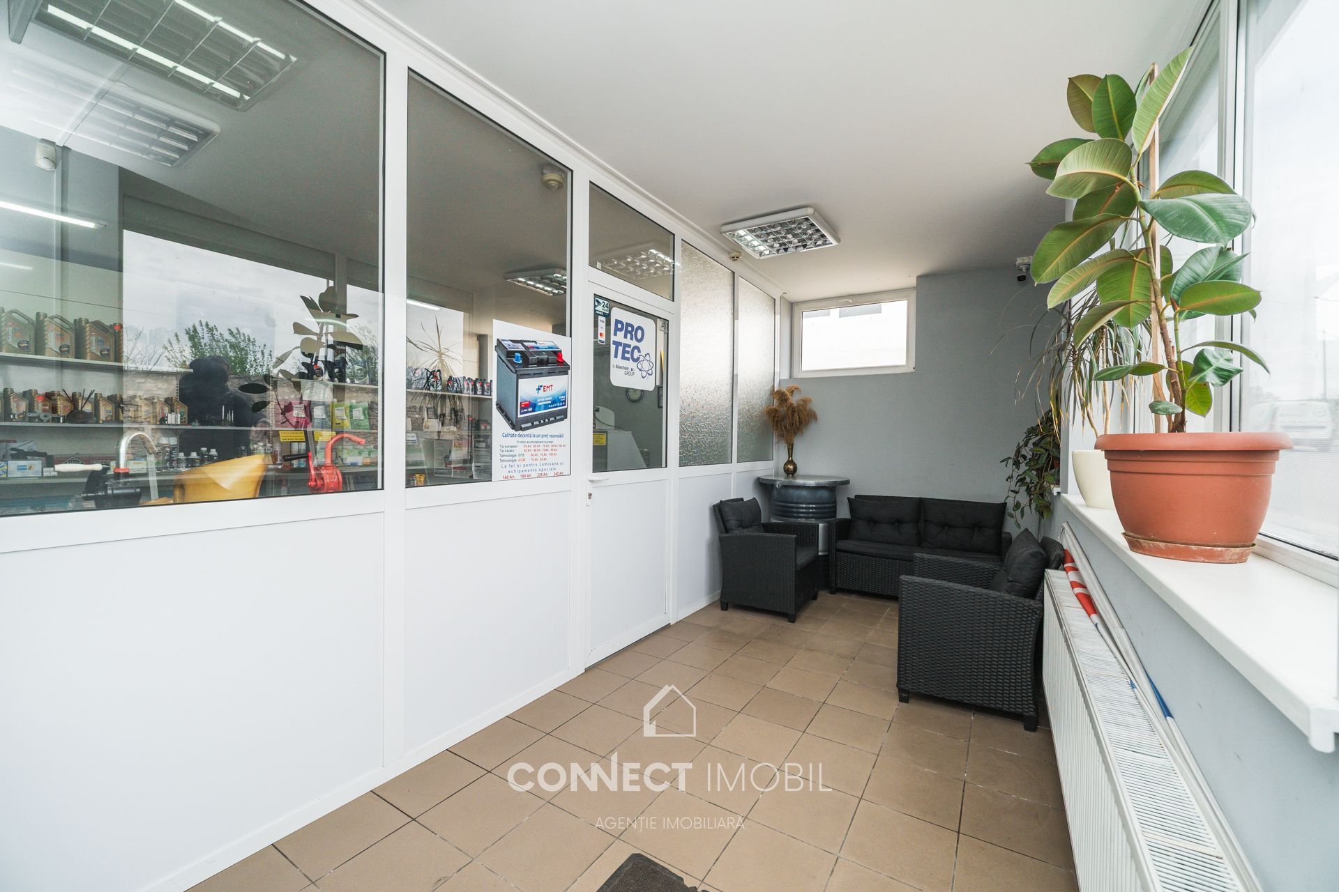 Zonă de relaxare: Canapele pentru clienți sau personal, spațiu separat pentru negocieri.