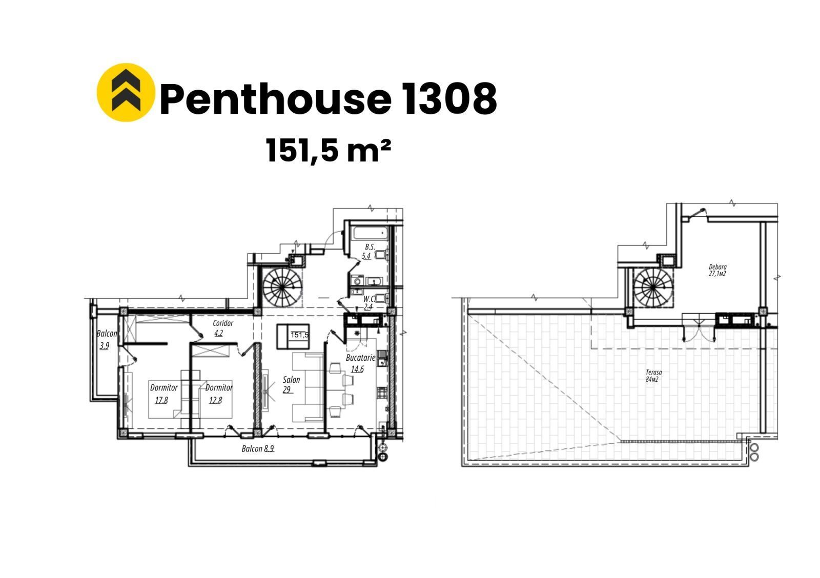 Также есть еще 2 ПЕНТХАУСА 152м2 и 173м2