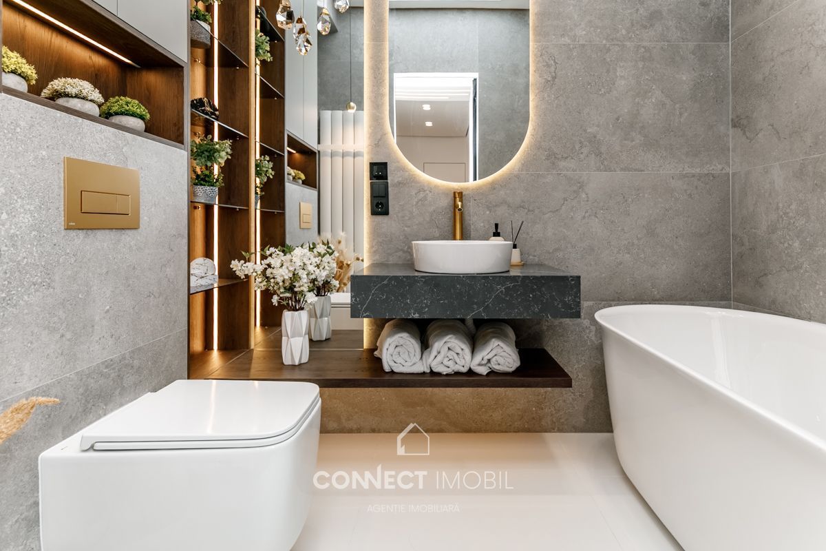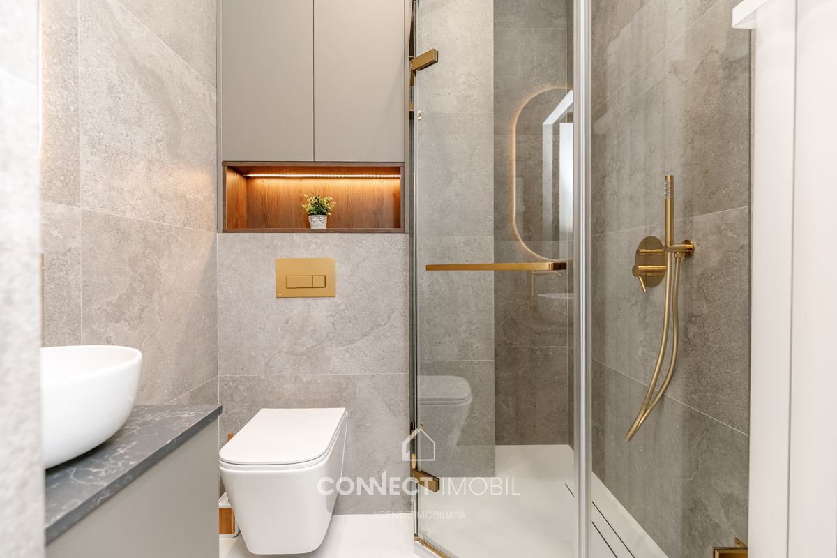 Compartimentat în: 2 dormitoare, living, bucătărie, 2 blocuri sanitare,balcon, antreu.