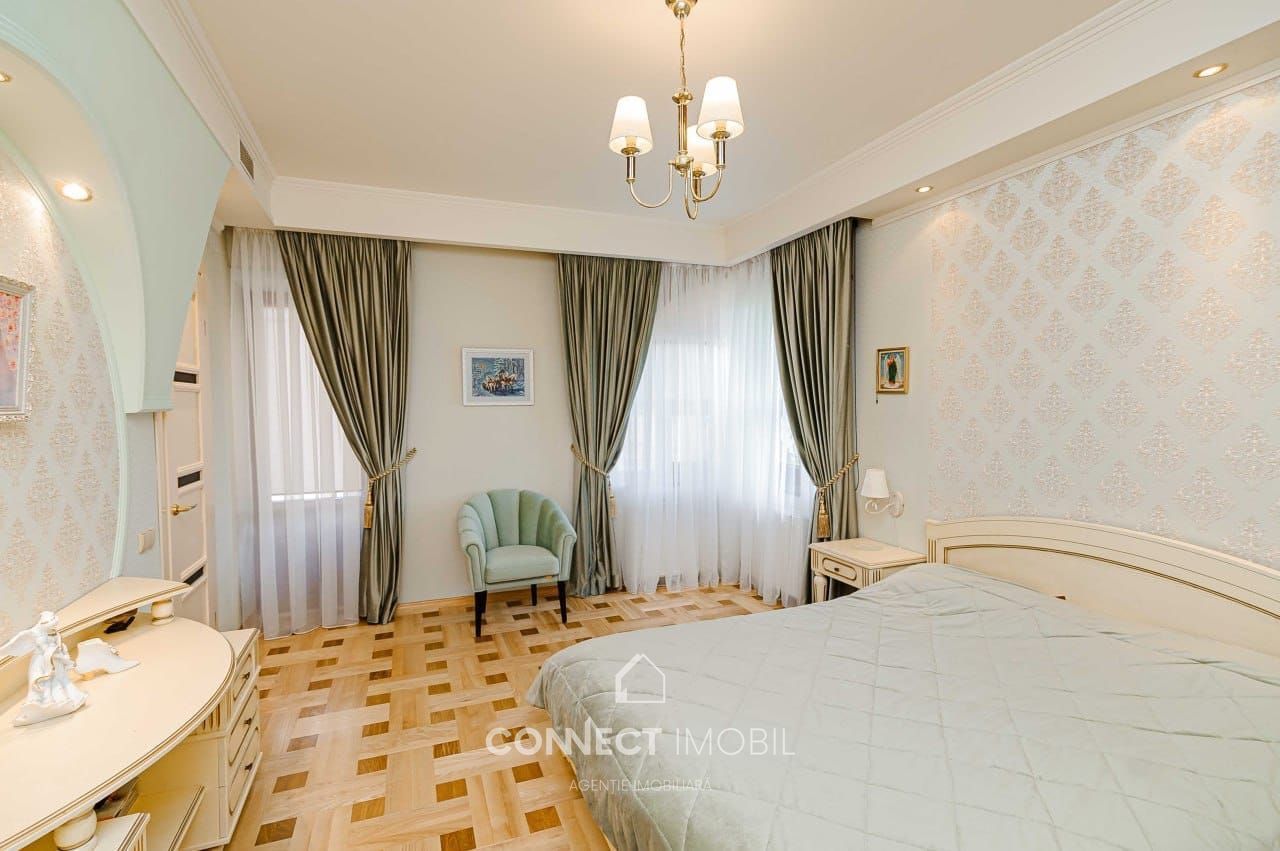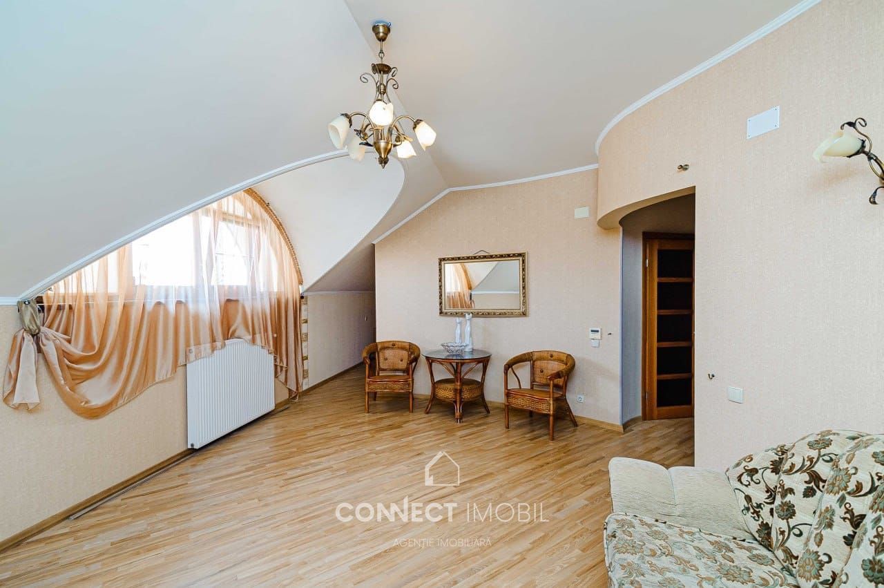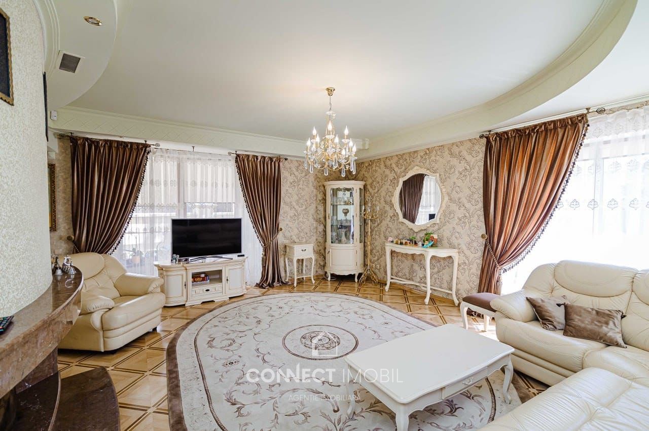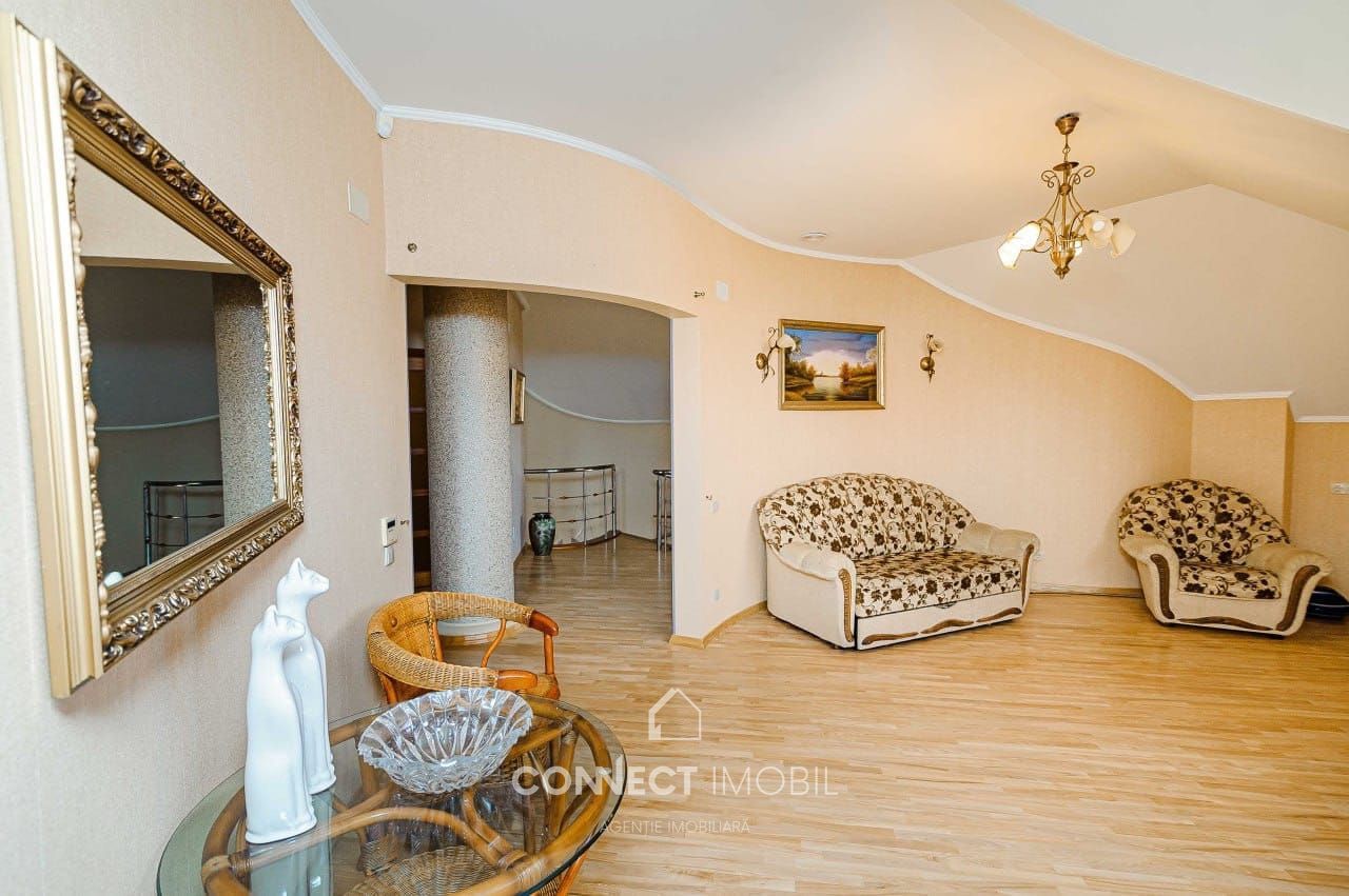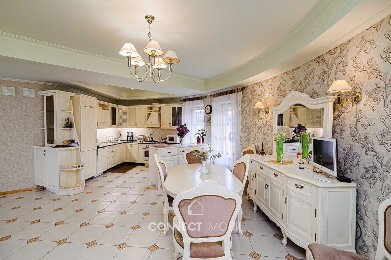 Se vinde exclusiv casă particulară pe 3 nivele, cu suprafața de 394 m², cu anexe gospodărești (garaj capital, atelier, beci), amplasată pe un teren privatizat de 8,3 ari, pe strada Miorița, în prestigiosul sector Telecentru.