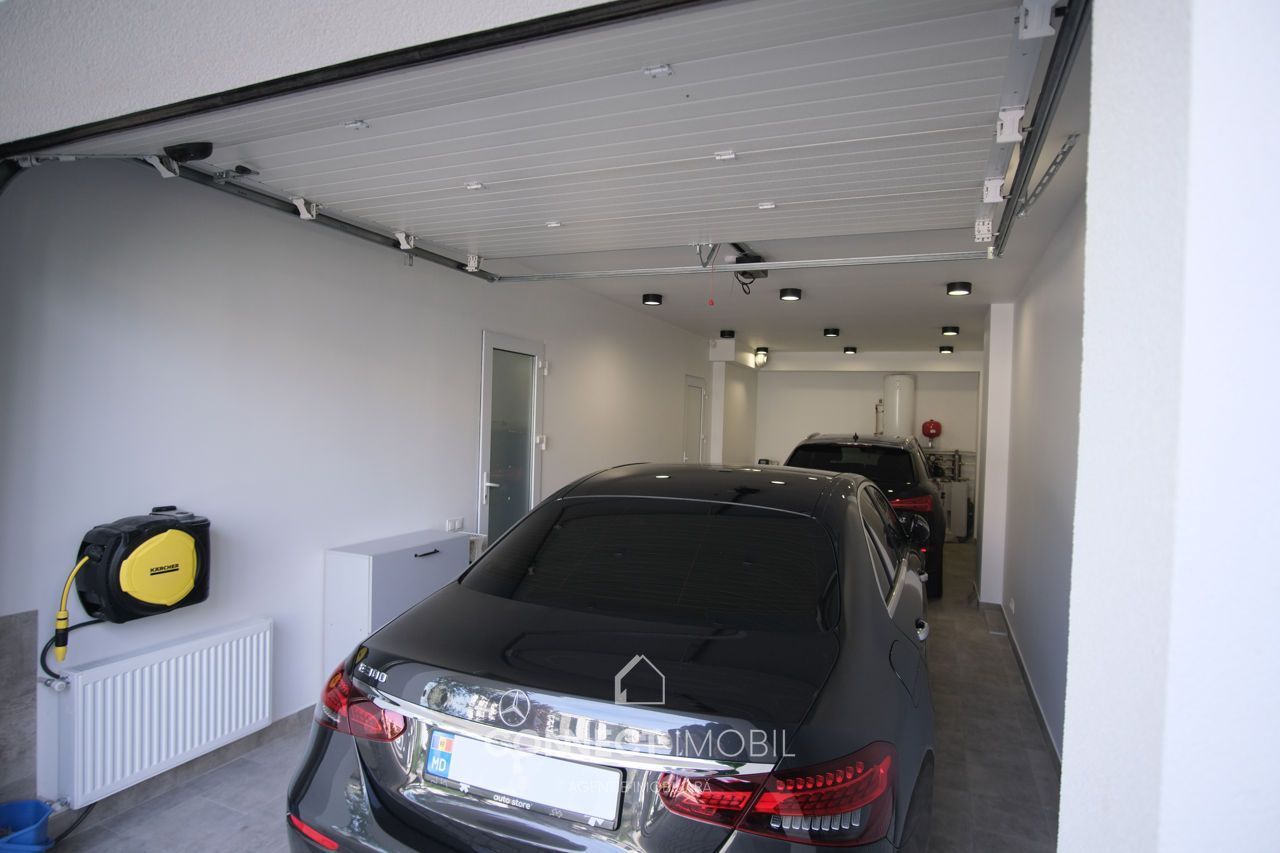 Demisol: zonă spațioasă de intrare, garderobă-spălătorie, garaj pentru 2 mașini (40 m²) cu debara (8 m²).