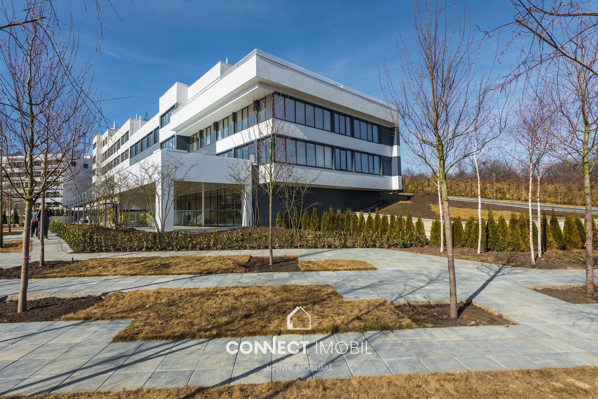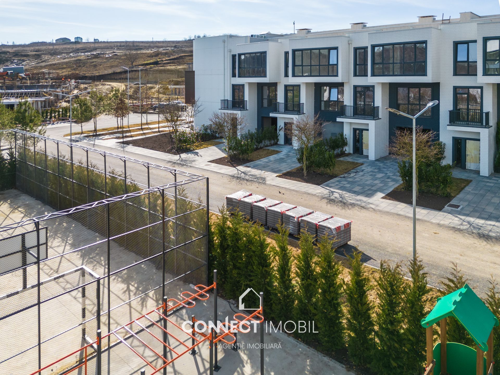 -Curte amenajată, spații verzi, alee pietonală, loc de joacă pentru copii, infrastructură completă: spații comerciale si viitoare grădiniță private.