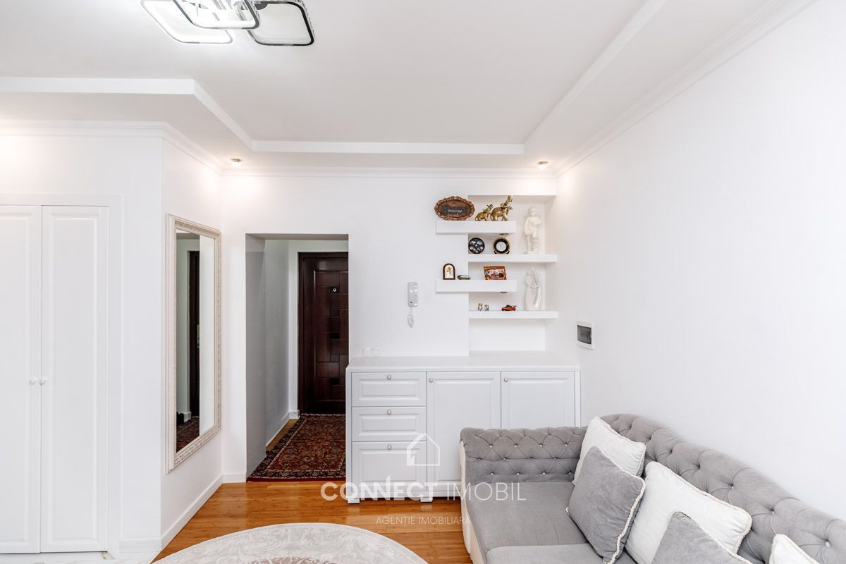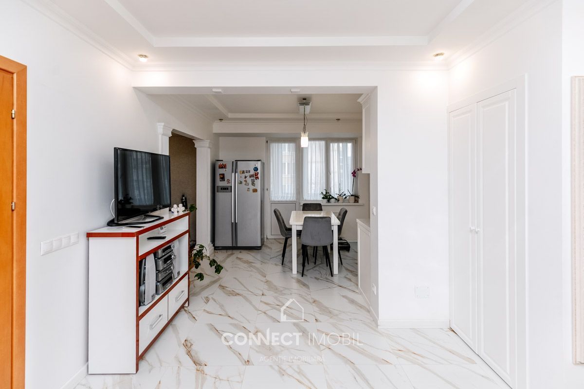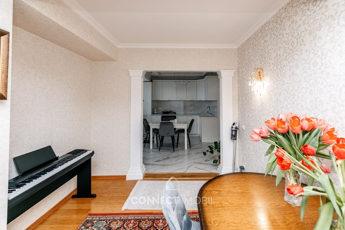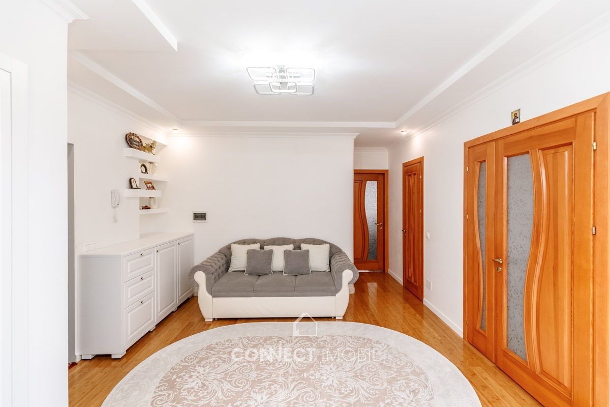 Продается премиальная 3-комнатная квартира с индивидуальным дизайном площадью 75 м2, расположенная в новом жилом комплексе от застройщика Басконслукс на улице Ион Крянгэ. Квартира располагается на 4 этаже из 9 и находится в 50 м от центра сектора Буюканы – Флакэра.